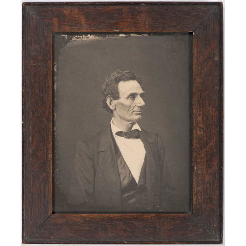 Platinum photograph, approx. 6.75 x 9 in., framed to 10 x 12 in., of Lincoln printed by George B. Ayres in 1881 directly from the original negative by Alexander Hesler, taken in Springfield, IL, June 3, 1860, catalogued by Lincoln collector Lloyd Ostendorf as sitting O-26.