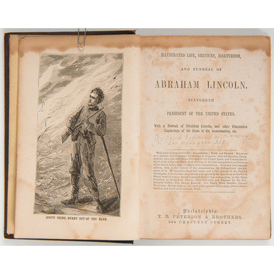 [Williamson, David Brainerd] Illustrated Life, Services, Martyrdom and Funeral of Abraham Lincoln. Philadelphia, PA: T.B. Peterson & Brothers, 1865. 12mo, brown cloth, 299pp. First Edition. (Monaghan #368)