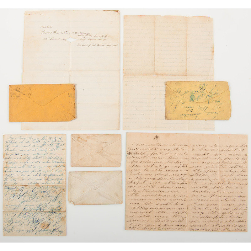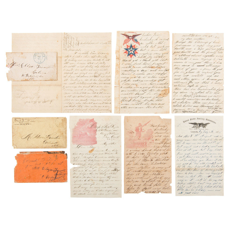 Lot of 15 letters written by Corporal James Funston, Co. H, 3rd Missouri Infantry, Private Adam Funston, Co. A, 96th Illinois Infantry, and 2nd Lieutenant Andrew D. Murphy, Co. G, 16th Iowa Infantry, to the Funston home in Illinois. The letters date from November 1861 to May 1865, with one post-war letter written by "Lizzie Funston" in April 1869.