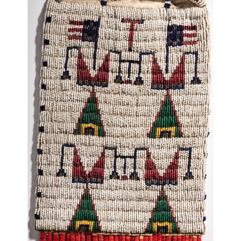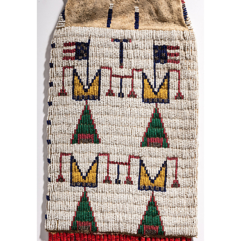Sioux Beaded Hide Tobacco Bag, with American Flags