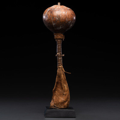 Southwestern Gourd Rattle with Buffalo Hide, From the Collection of Dick Jemison, Alabama