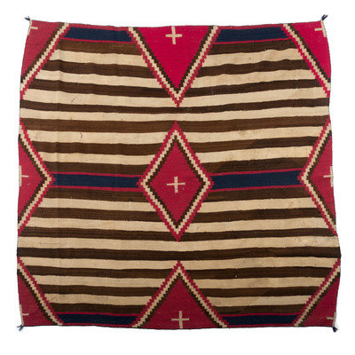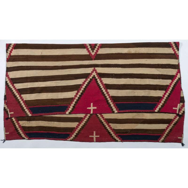hand-spun wool; with classic design of alternating brown and cream bands and stepped anchor points housing crosses