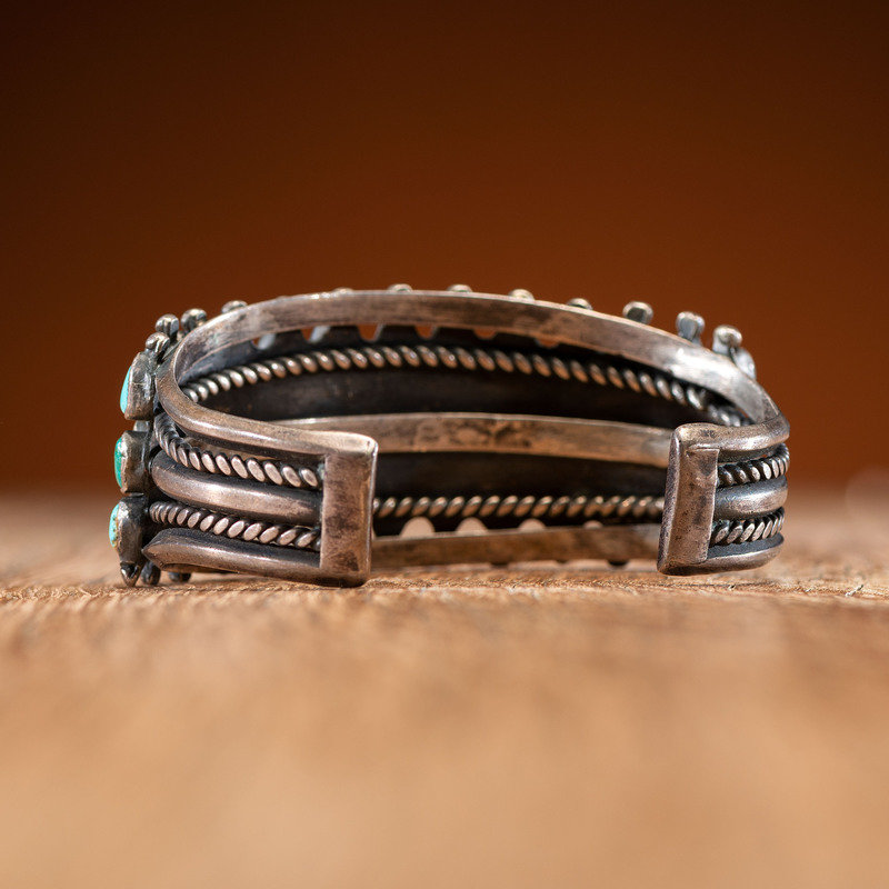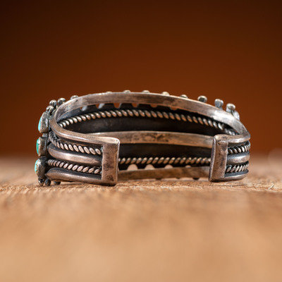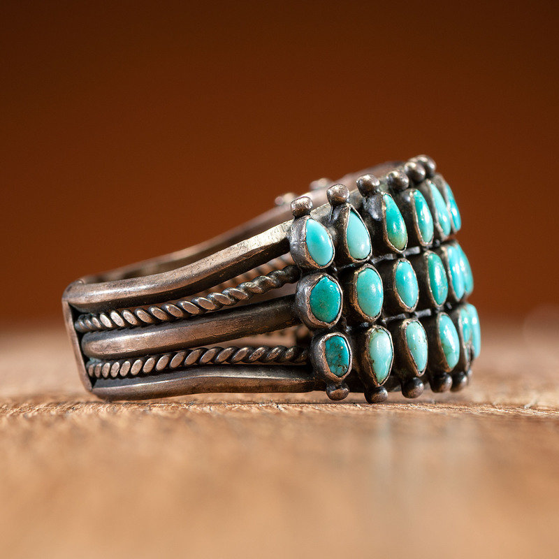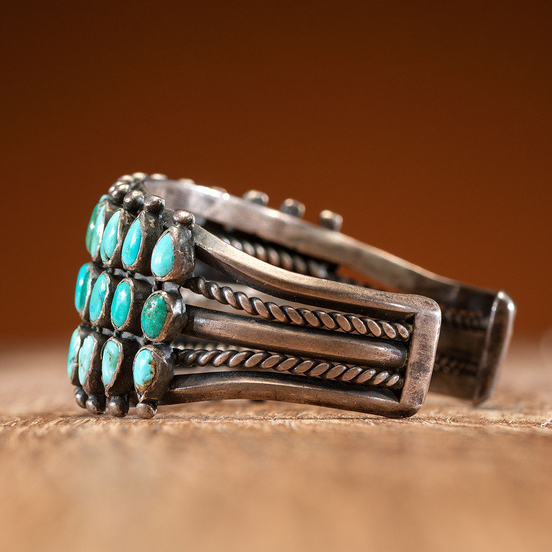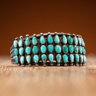 Zuni or Navajo Silver and Petit Point Turquoise Cuff Bracelet