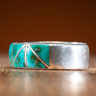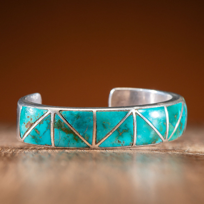 Zuni Silver and Channel Inlaid Turquoise Cuff Bracelet