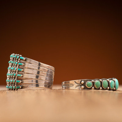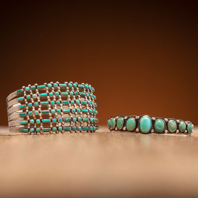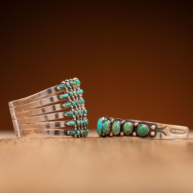 Zuni and Navajo Silver and Turquoise Cuff Bracelets