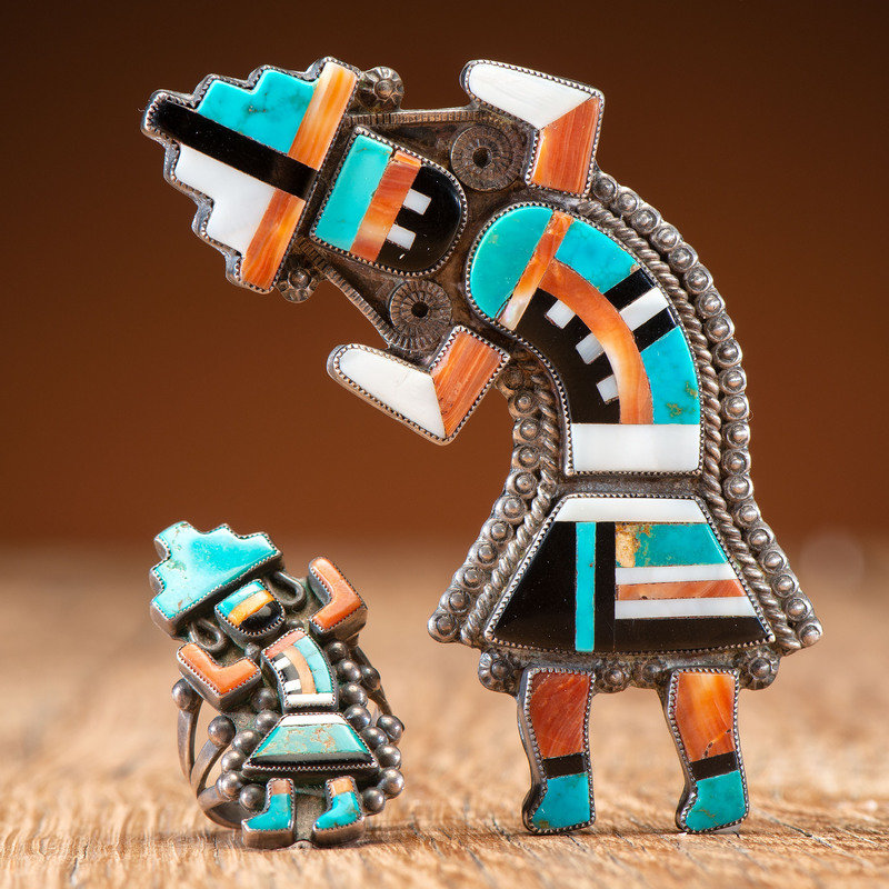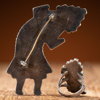 Zuni Silver and Mosaic Inlay Rainbow Man Pin/Brooch AND Ring