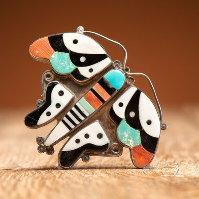 Zuni Silver and Mosaic Inlay Butterfly Pin / Brooch