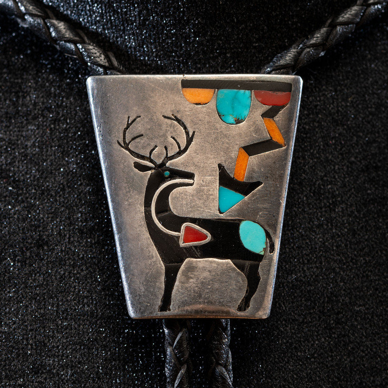 Zuni Silver and Mosaic Inlay Bolo Tie