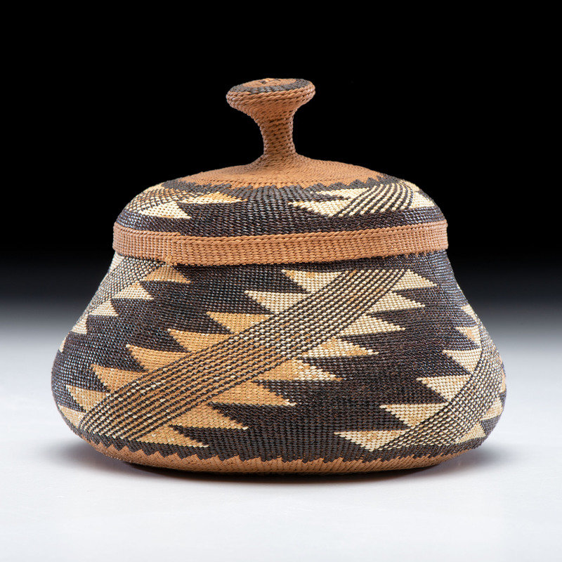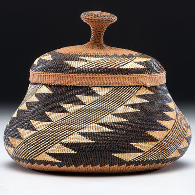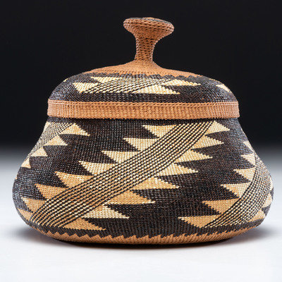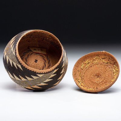 Elizabeth Hickox (Wiyot, 1872-1947) Attributed, Polychrome Lidded Basket