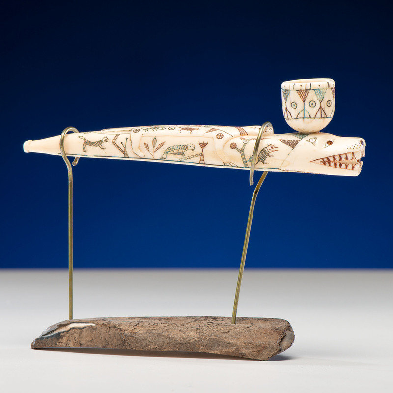 Nunivak Island Carved Polychrome Pipe