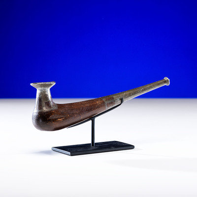 Siberian Eskimo Wood Pipe, with Pewter Inlay