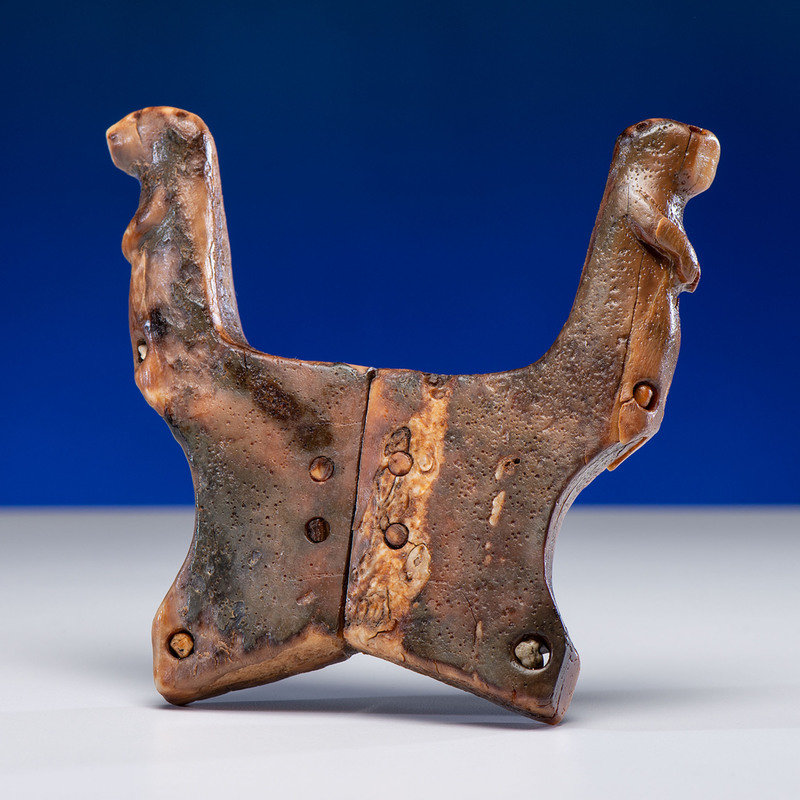 Iñupiat Fossilized Walrus Ivory Harpoon Rest, with Seals