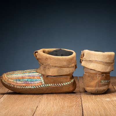 Antique Northern Plains Quilled Moccasins - Antique, greater then 100 years old.