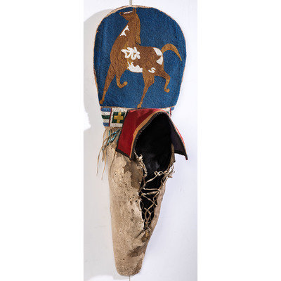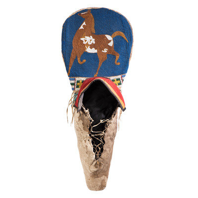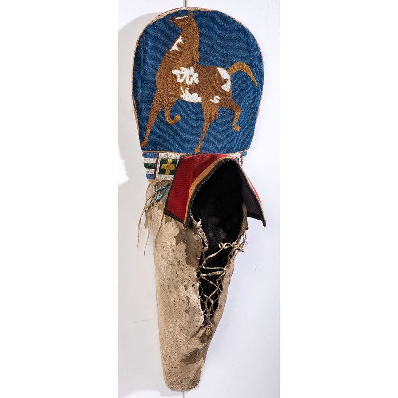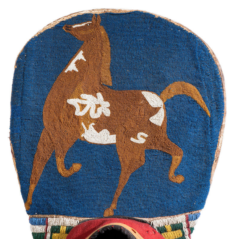 Plateau Child's Beaded Hide Cradleboard, with Pinto Horse