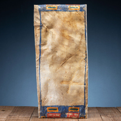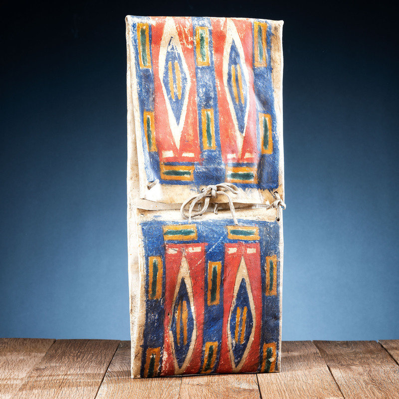 painted in orange, blue, and red; with elongated diamonds and nesting rectangles