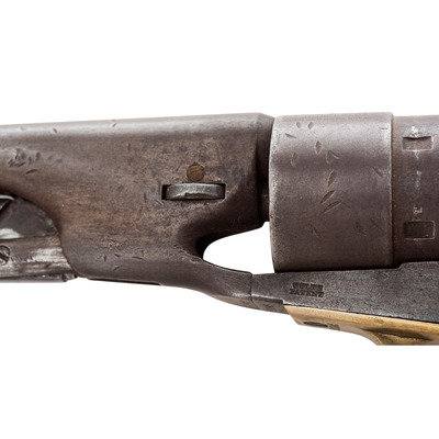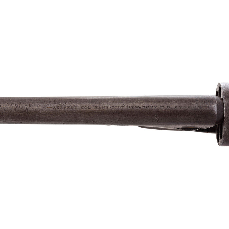 Revolver is identified to James S Hutton with an accompanying file of paperwork documenting that the gun was purchased at auction from the Redfield, SD Masonic Lodge #34 where the gun had been in the possession of the lodge since its donation to the lodge by the original owner, prior to his death in 1908. Various correspondence confirms this and further notes that the local Knights Templar Commandery #33 is named the Huston Commandery after him.