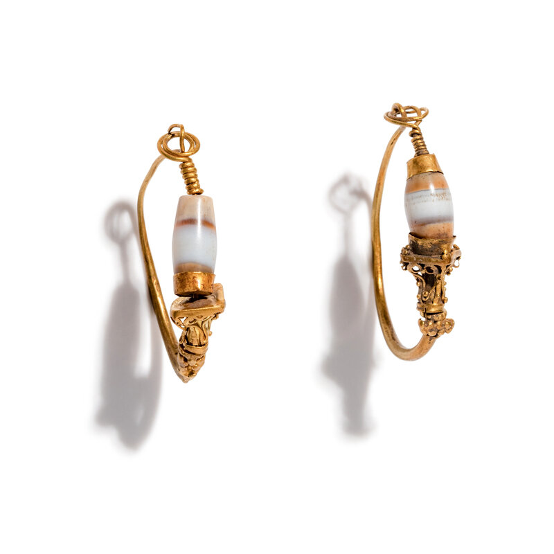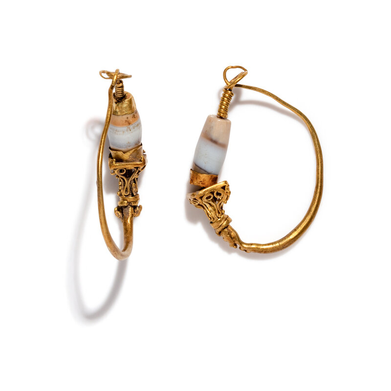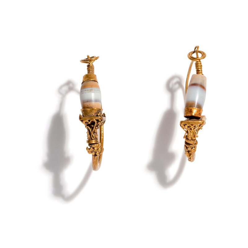 A Pair of Roman Agate and Gold Hoop Earrings