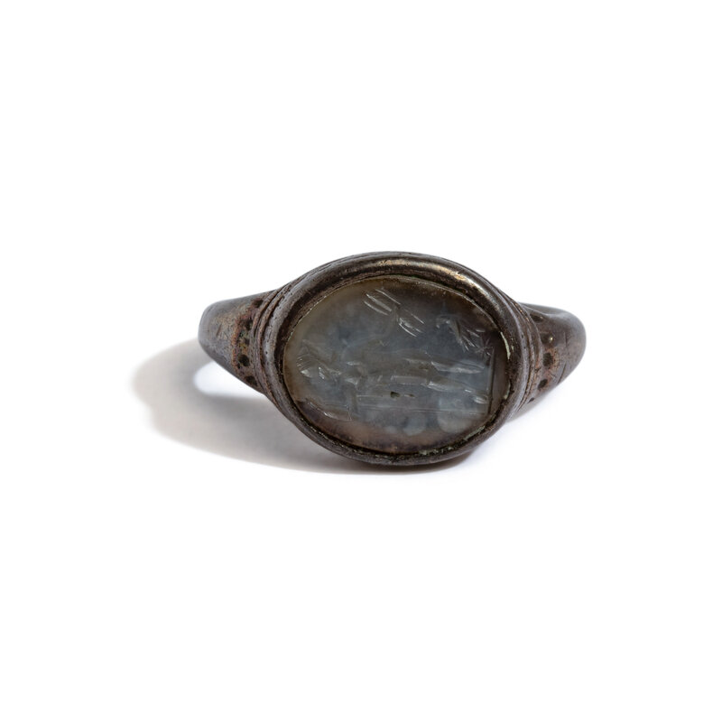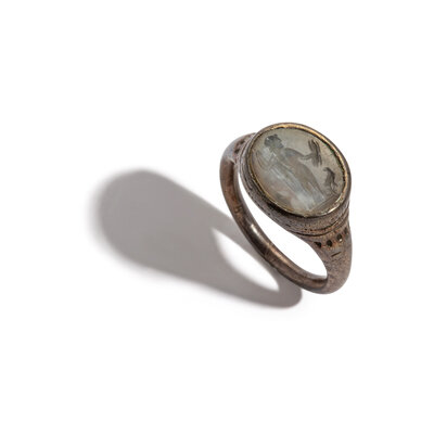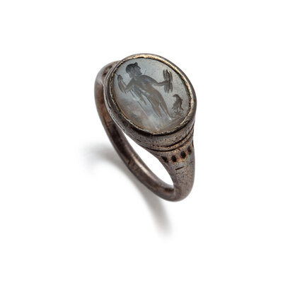 A Roman Silver and Chalcedony Finger Ring with the God Jupiter