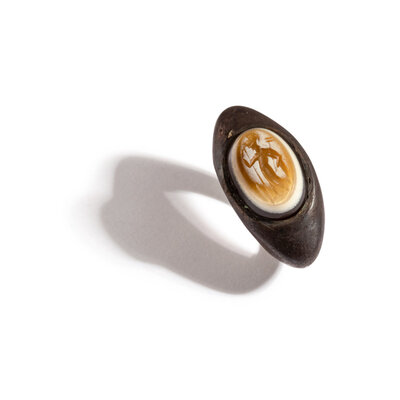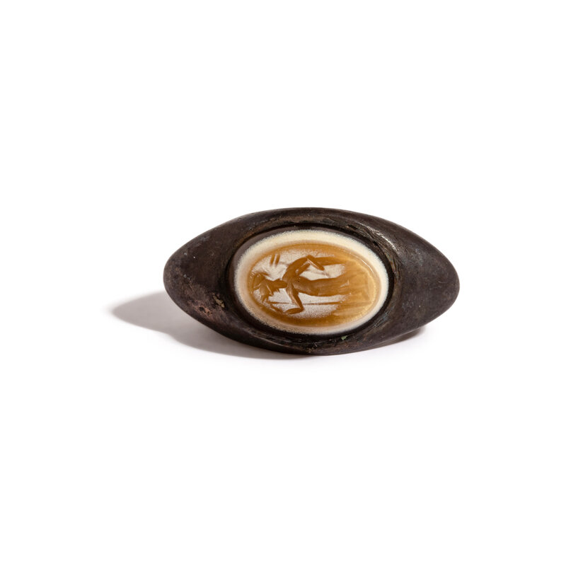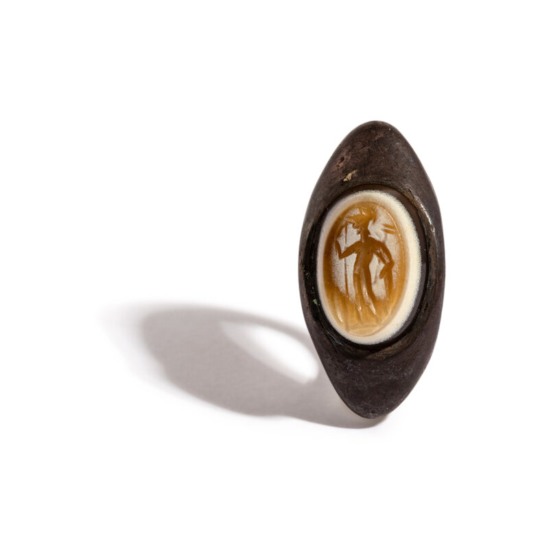 A Roman Agate and Silver Finger Ring with the Goddess Minerva