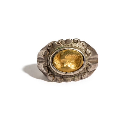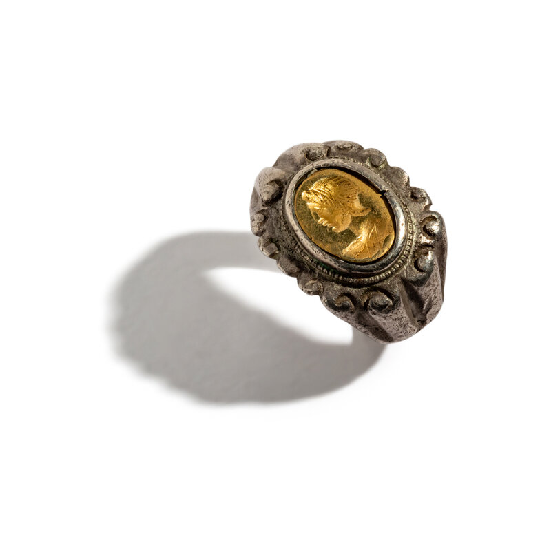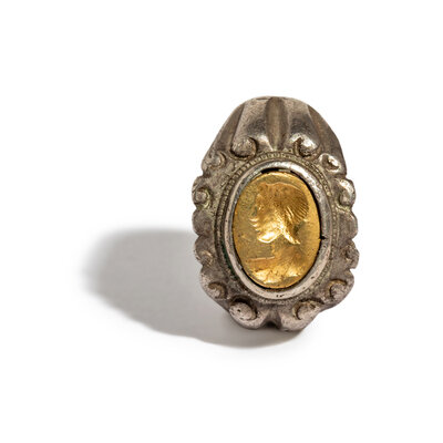 A Roman Silver and Gold Finger Ring with a Portrait Head