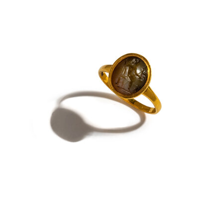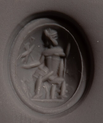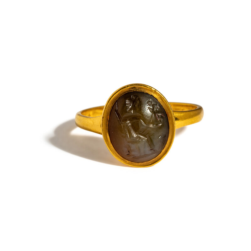 A Roman Chalcedony Ring Stone with the Gods Jupiter and Nike Enthroned