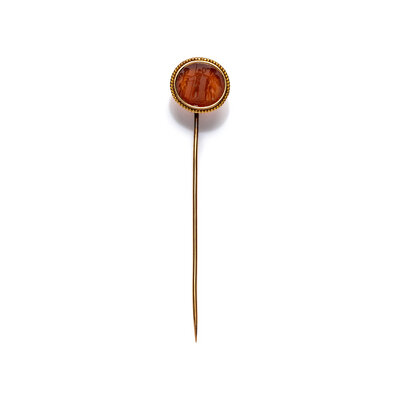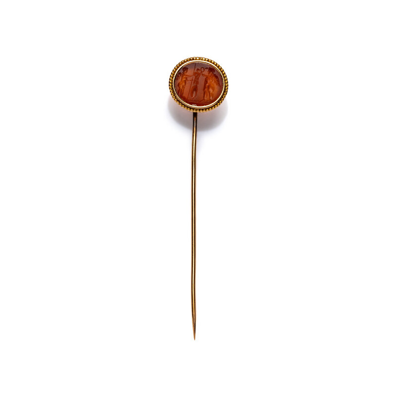 Length of pin 2 3/4 inches (6.99 cm); High karat gold; 1.99 dwt.
