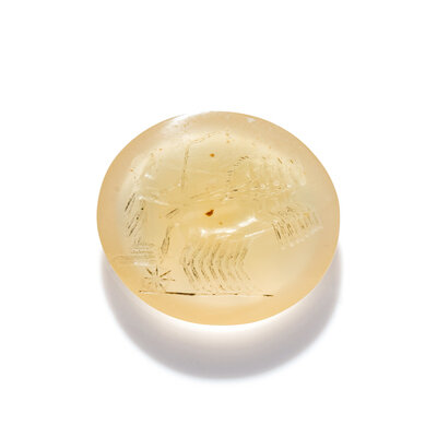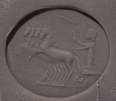 A Roman Chalcedony Ring Stone with a Charioteer Driving a Quadriga