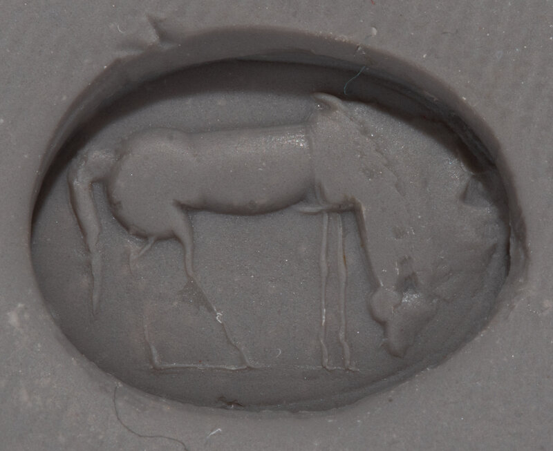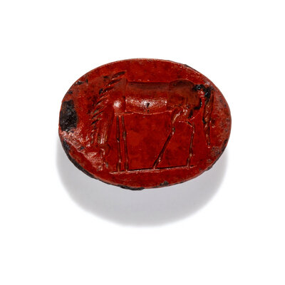 A Roman Red Jasper Ring Stone with a Grazing Horse