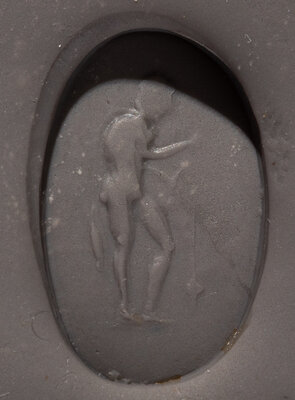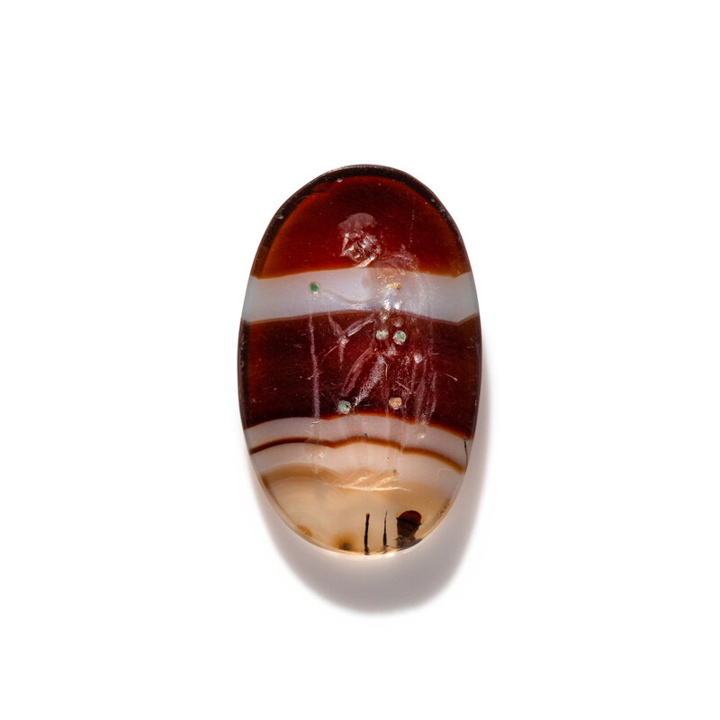 A Roman Banded Agate Ring Stone with a Fisherman and His Catch