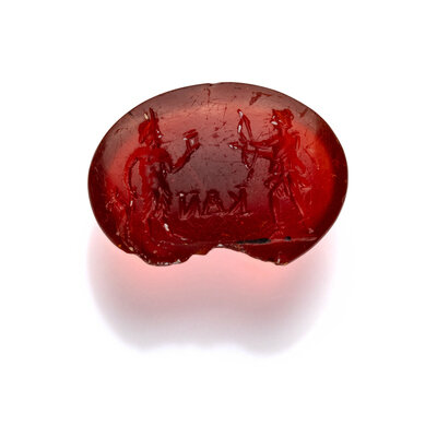 A Roman Carnelian Intaglio with the Gods Pan and Diana
