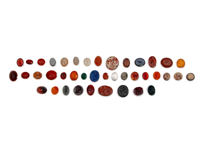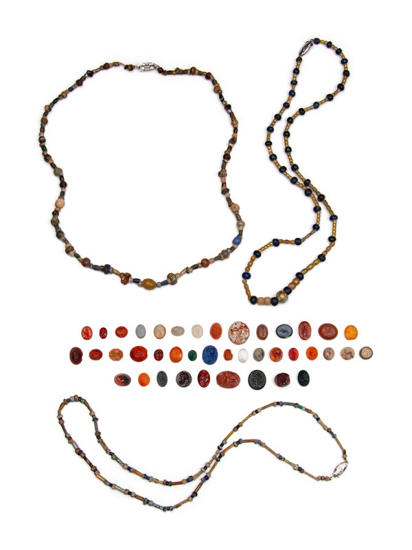 40 Greco-Roman and Persian Hardstone Intaglios and Three Bead Necklaces