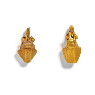 Height 5/8 inch (1.59 cm); High karat gold; 9.43 dwt.