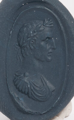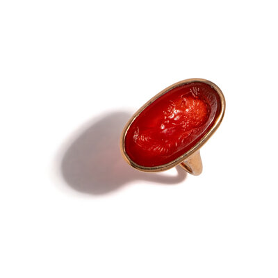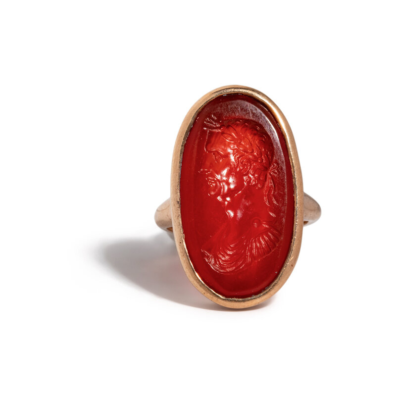 A Neoclassical Carnelian and Gold Finger Ring with a Portrait Bust of the Roman Emperor Augustus