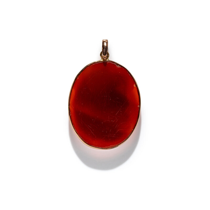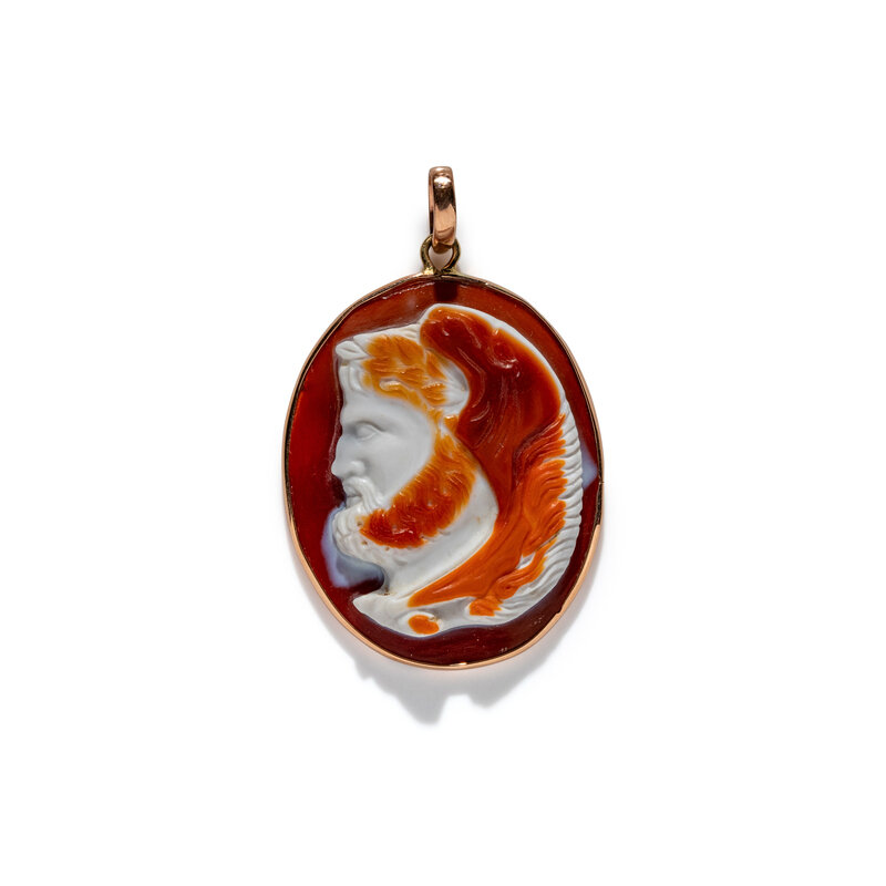 A Neoclassical Gold and Sardonyx Cameo Pendant with a Portrait Head of Hercules