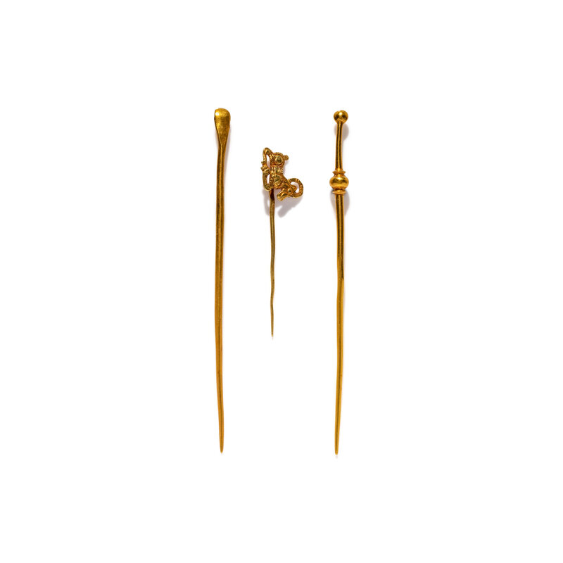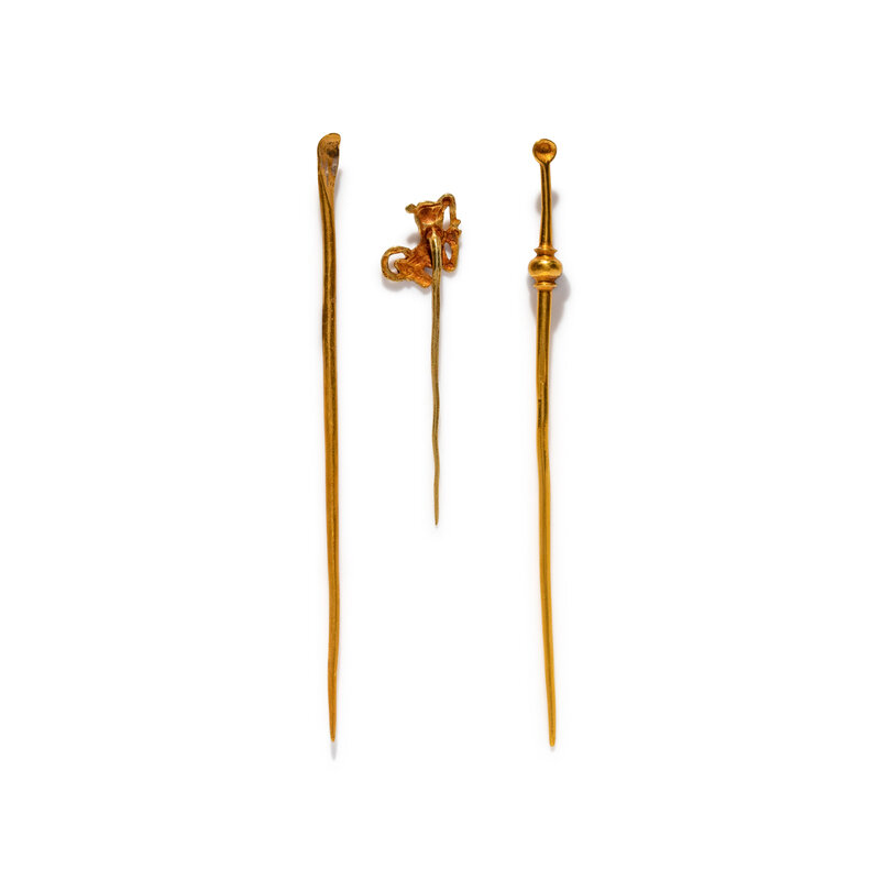 Length of largest 4 3/8 inches (11.11 cm); High karat gold; 11.86 dwt.