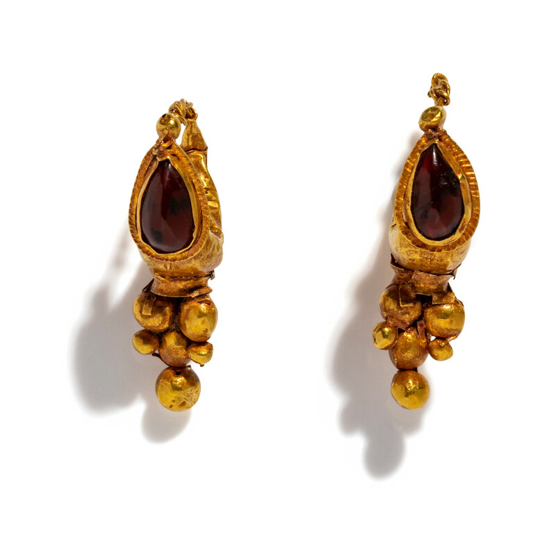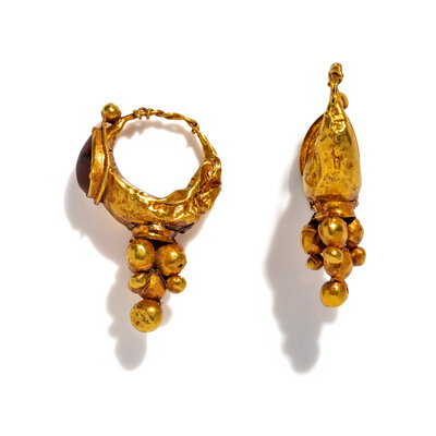 A Pair of Roman Gold and Garnet Earrings