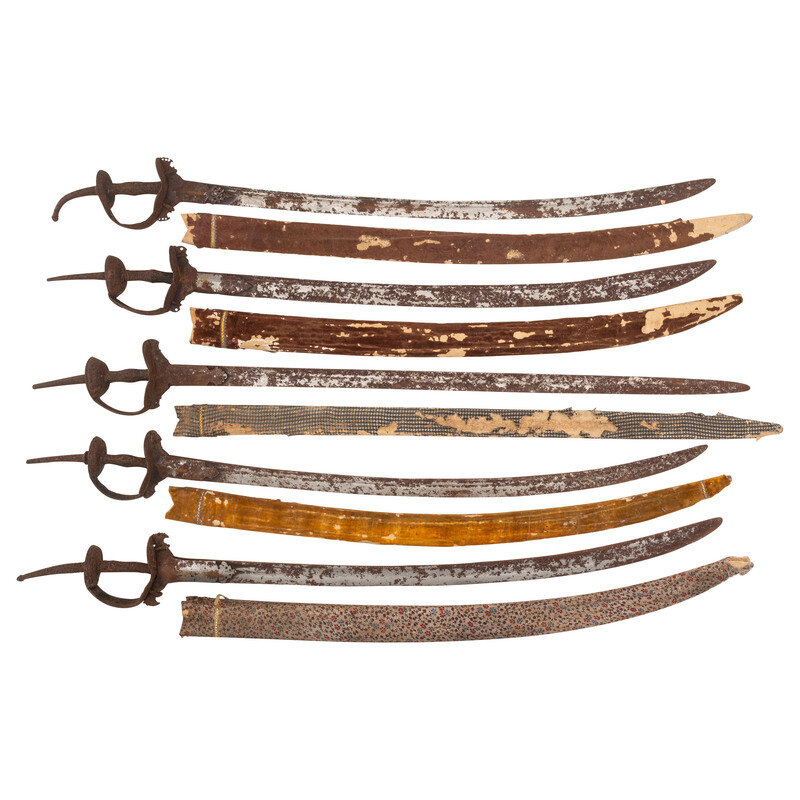 Lot of 5 Indian Khanda Swords with Textile Wrapped Scabbards