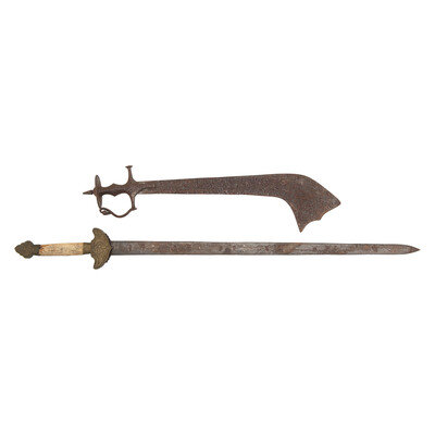 Lot of 2 Ethnographic Swords Including: Nepalese Kora and Chinese Jian