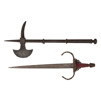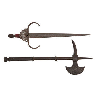 Lot of 2 Ethnographic Edged Weapons: Main Gauche and Tabar Axe