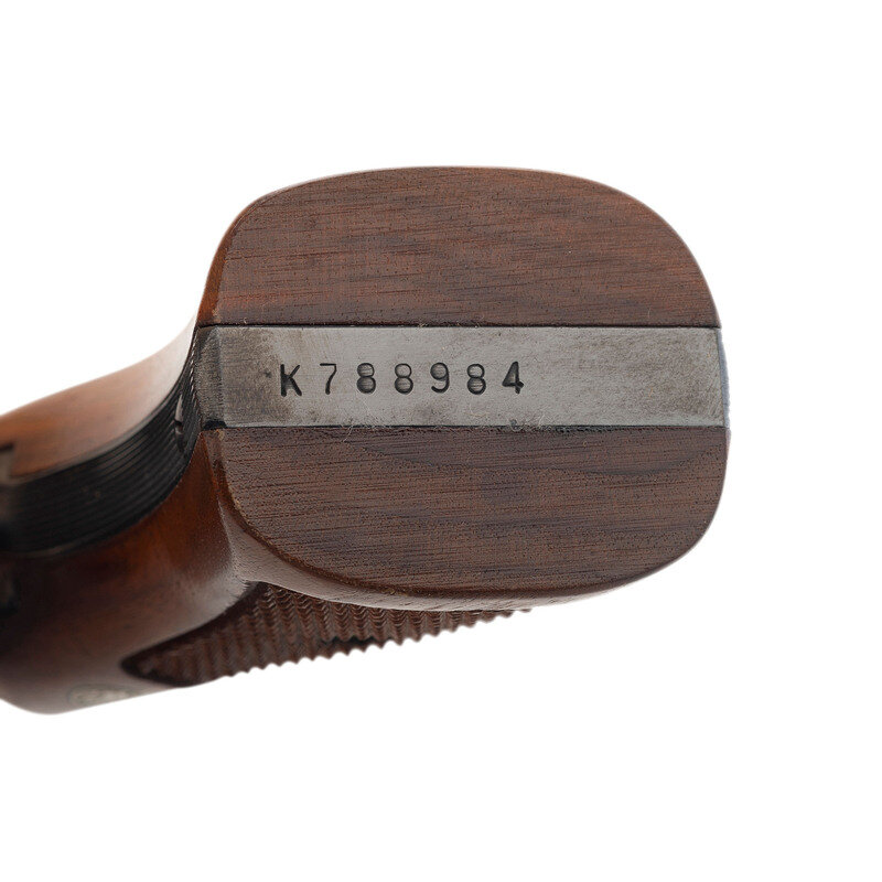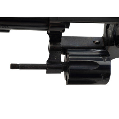 .22 LR. 5.875" barrel length. SN: K788984. Blued metal finish with casehardened hammer and trigger mounting checkered Smith & Wesson medallion grips. Double action six-shot hand ejector revolver mounting adjustable target rear and Patridge front sights on a matted rib. Revolver features a recessed cylinder and pinned barrel on a three-screw frame. Standard make and model markings including MOD./17-2 to the inner frame. Comes in a matching blue cardboard box with a cleaning kit, owner's manual for the Model 17, and a further owner's manual for a Model 28.