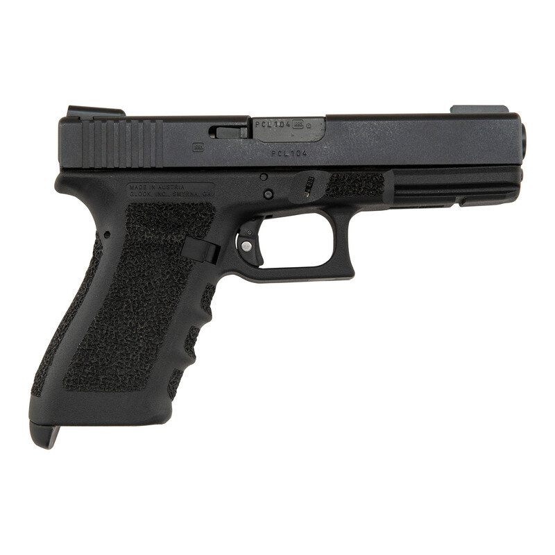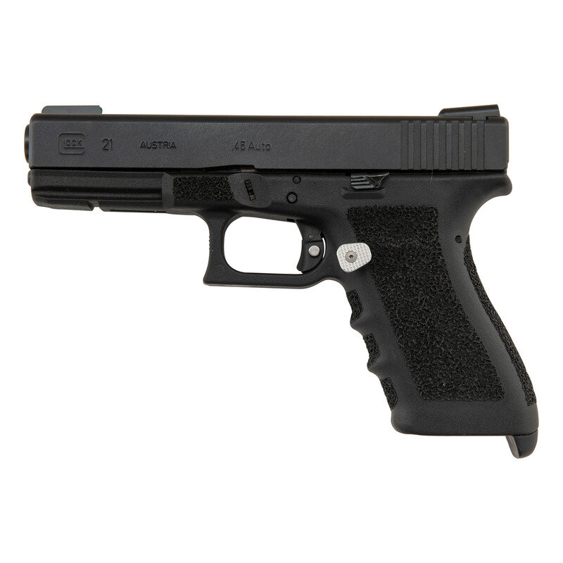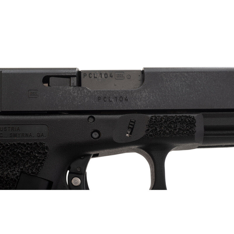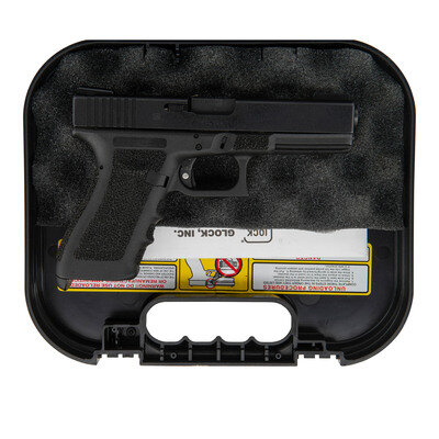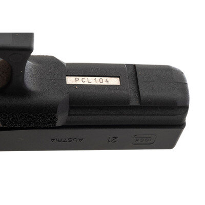 .45 ACP. 4.6" barrel length. SN: PCL104. Black "Tenifer" finish to the slide with black synthetic Gen 3 frame with custom texturing to the grips and mounting TRU-GLO TG-H3 sights. Short-recoil operated striker action autoloading pistol fed by detachable double stack magazines. Item mounts an enlarged magazine release, extended slide stop, and Siderlock pattern trigger safety. Slide rear plate has been replaced with one laser engraved with a {Skull and cross bones} motif. Item displays standard make and model markings indicating Austrian manufacture. Comes in a black synthetic hard case with the owner's manual. Comes with no magazines.
