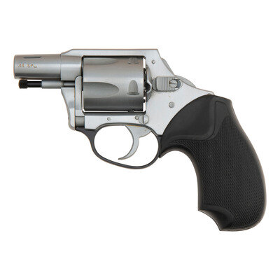 .44 Special. 1.875" Mag-na-Ported barrel. SN: 498840. Matte stainless steel finish, blackened aluminum triggerguard and ejector rod, checkered rubber grip. Double action revolver with bobbed-hammer, top strap groove rear sight, no front sight and five-shot fluted swing out cylinder. Includes a zippered gun rug and a Mag-na-Port jacket patch.
