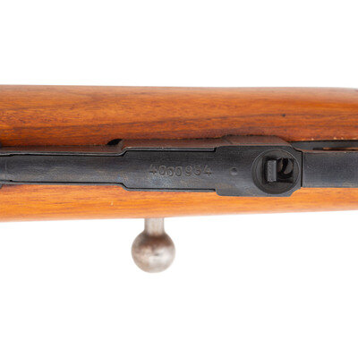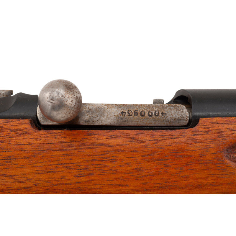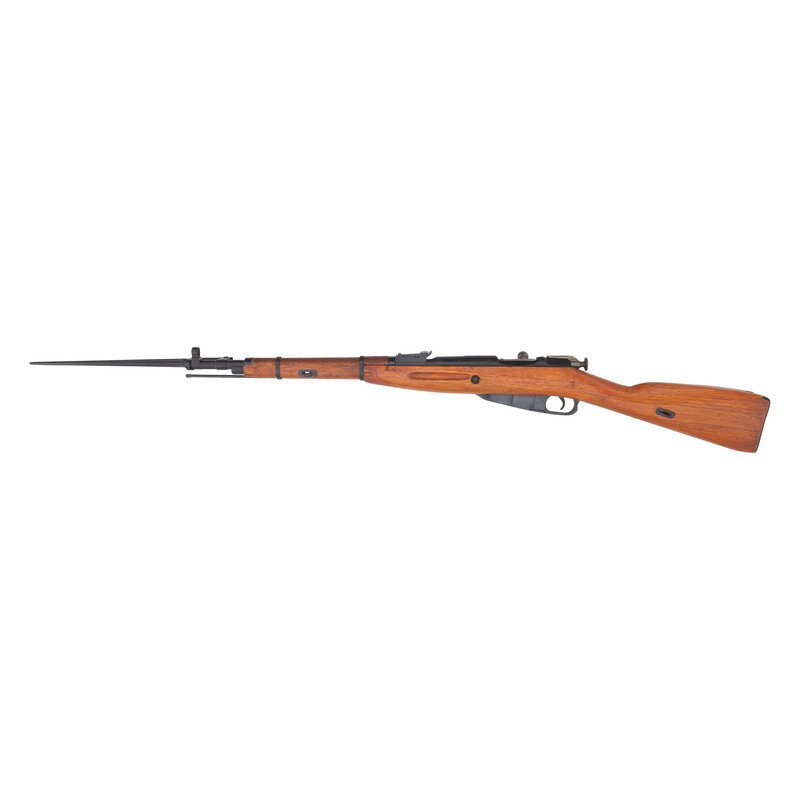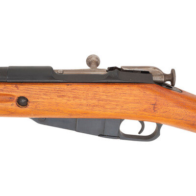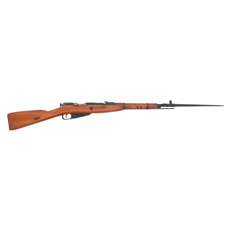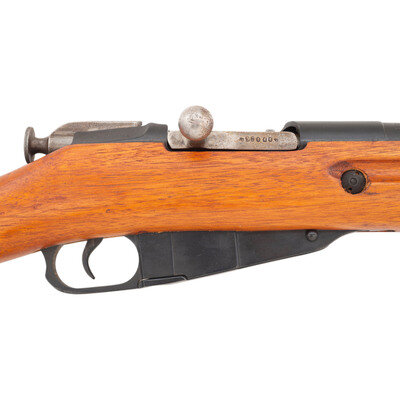 7.62x54mmR. 20.5" barrel length. SN: 4000934. Black military finish and polished steel bolt. Hardwood stock has a plain straight grip and forearm, with handguard and grasping grooves. Bolt action rifle with an adjustable tangent notch rear sight and globe post front sight. Item features an integrated magazine, fixed folding spike bayonet, double sling loops, and a slotted head cleaning rod. Markings include a 1956 date above a 26 arsenal markings, and importer marks to right of receiver.