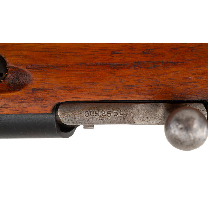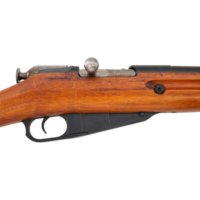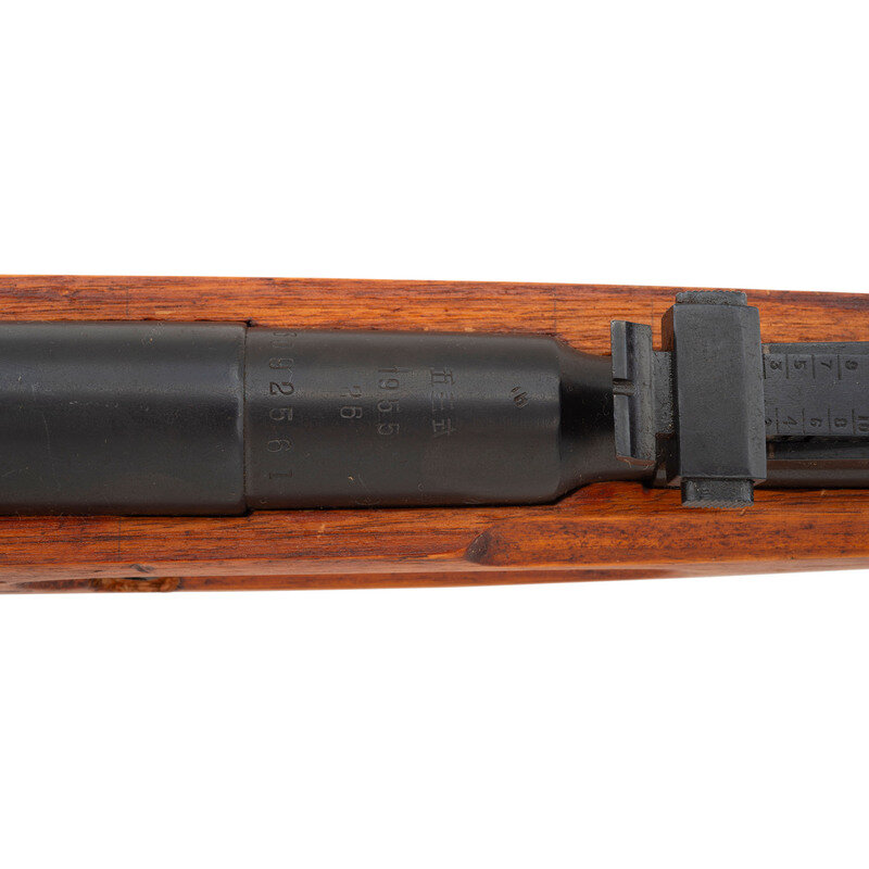 7.62x54mmR. 20.5" barrel length. SN: 3092561. Blued military finish and polished steel bolt. Hardwood stock has a plain straight grip and forearm, with handguard and grasping grooves. Bolt action rifle with an adjustable tangent notch rear sight and globe post front sight. Item features an integrated magazine, fixed folding spike bayonet, double barrel bands, double sling loops, and a slotted head cleaning rod. Markings include Chinese character markings over 1955 date and Factory 26 arsenal mark.
