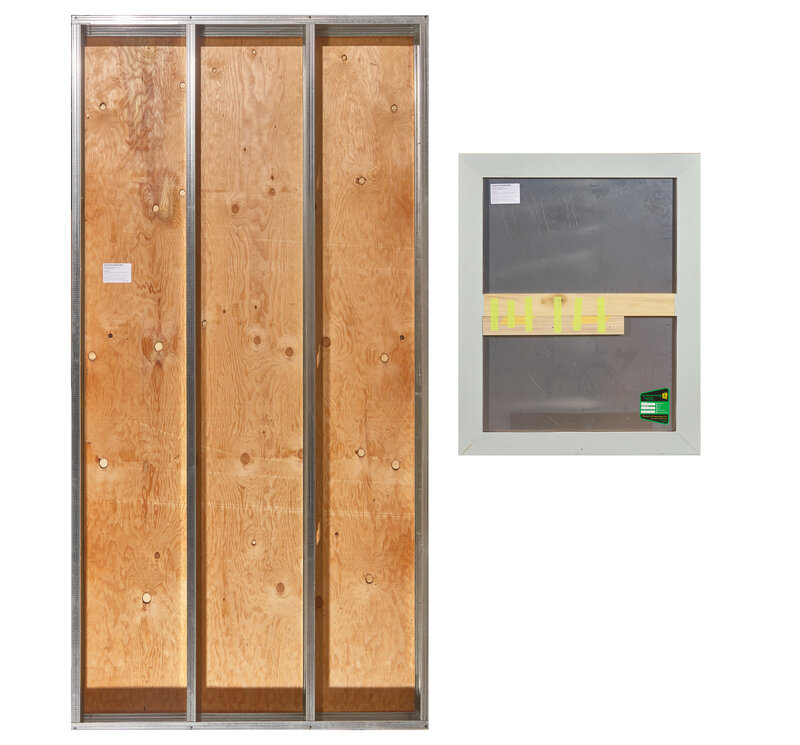 c-print in artist's frame, aluminum, drywall, plywood and latex in two parts
