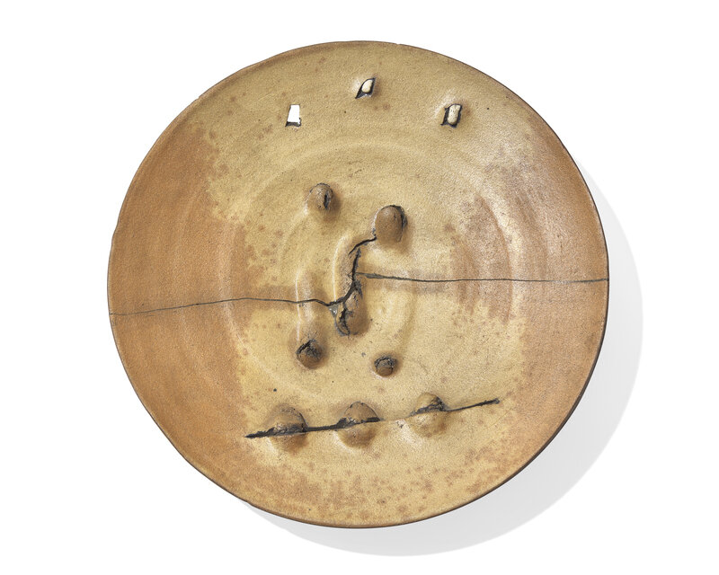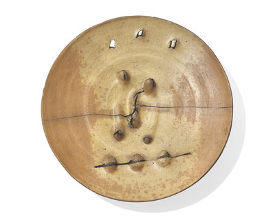 glazed, gouged, and incised stoneware with porcelain pass-throughs