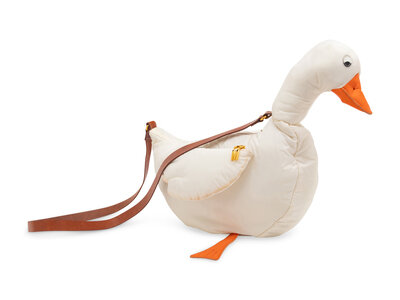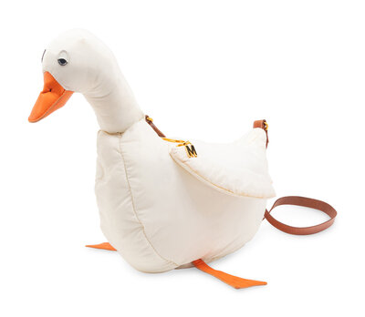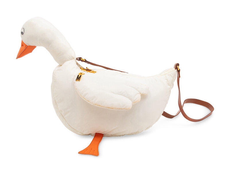 Padded Goose Shoulder Bag in Off-White Nylon with Orange Leather Accents and Gold-Tone Hardware.