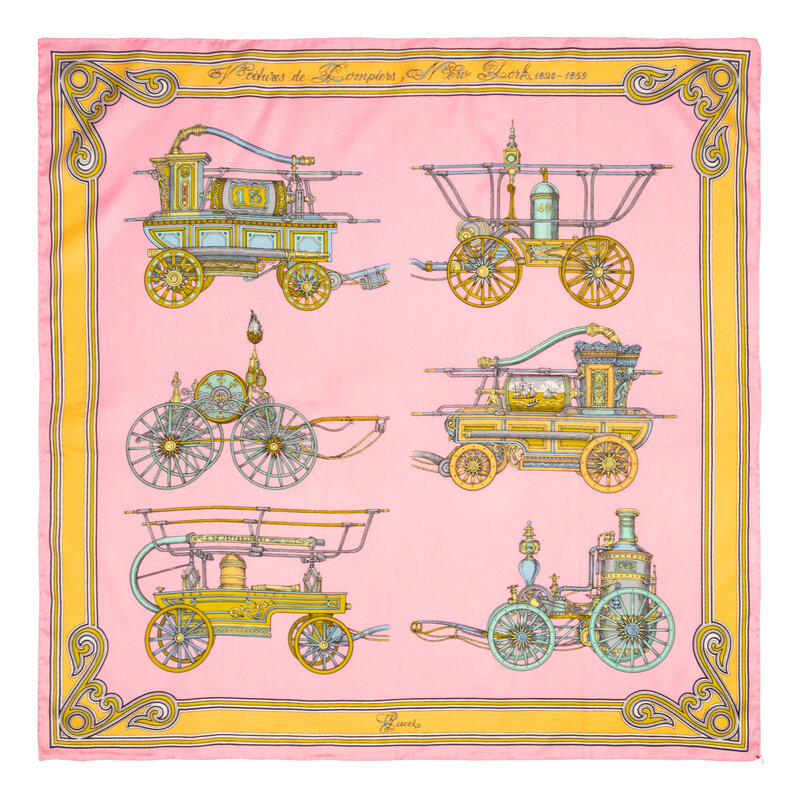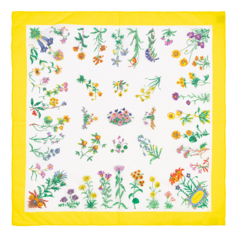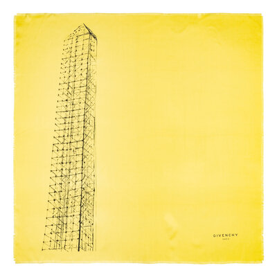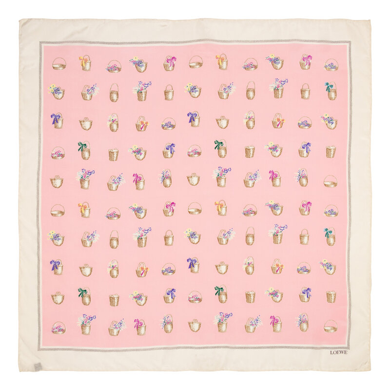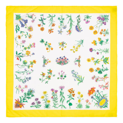 Square scarf in printed silk twill. Hand rolled edges.
