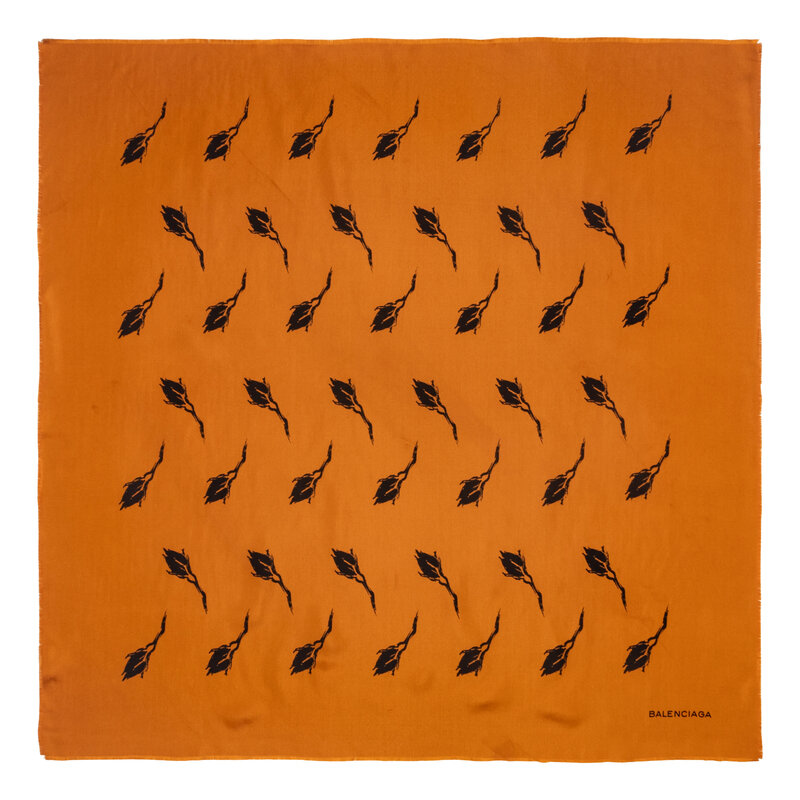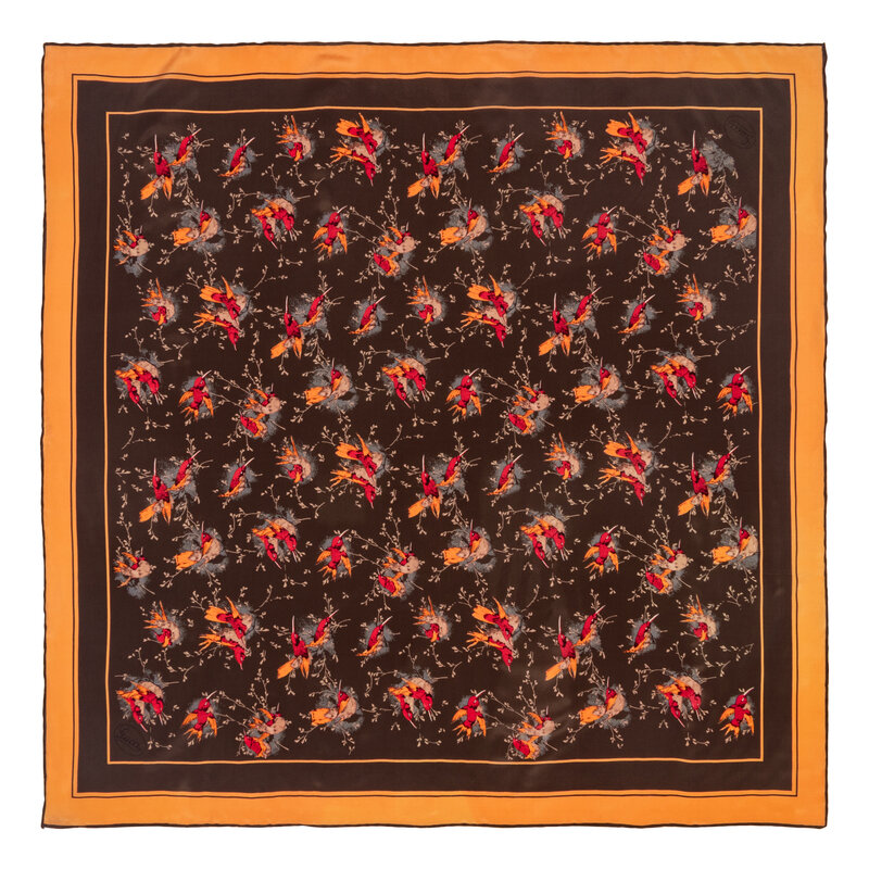 Square scarf in printed silk jacquard. Hand rolled edges.
