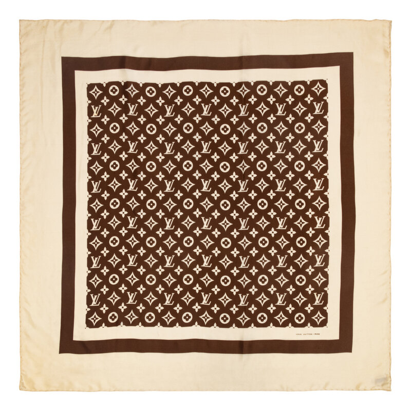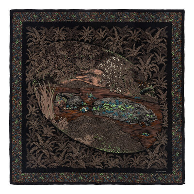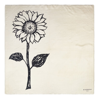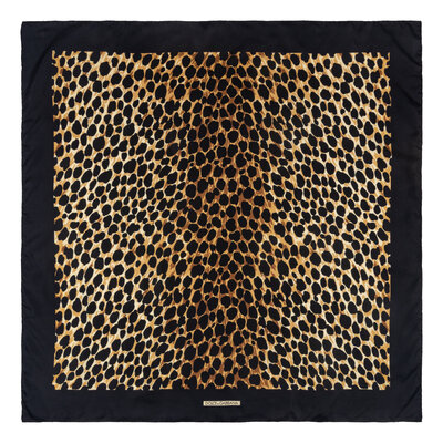 Square scarf in printed silk charmeuse. Hand rolled edges.